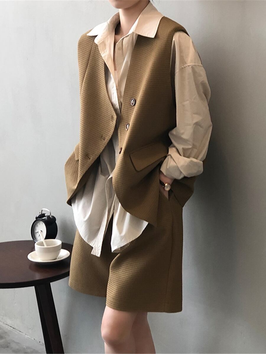 セットアップ ジャケット ボトムス ベスト ズボン ブラウン ブラック 袖なし ノースリーブ 夏 春 秋 ポケット かわいい 大人可愛い きれいめ シンプル カジュアル 大人 上品 おしゃれ お洒落 かっこいい レトロ アジアン エスニック エキゾチック 大人可愛い 大人女子 こなれ感 ラフ キュート ガーリー ルーズ 個性的 クール モード系 セクシー エレガント モダン 主役級 存在感 とろみ感 抜け感 春 秋 10代 20代 30代 女性用 ママ デート お出かけ 公園デビュー 女子会 休日