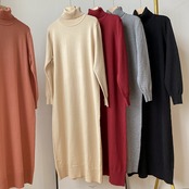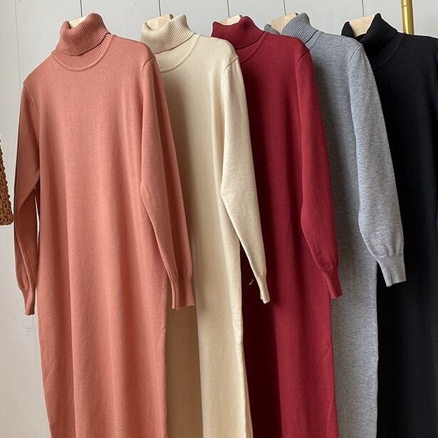 ニットワンピース ロングワンピース 秋 冬 春 萌え袖 レディース 無地 シンプル 上品 大人女子 タイト スリム 細身 マキシワンピ マキシ丈 キレイ カジュアル 可愛い かわいい 暖かい 30代 40代 50代 タートルネック 膝下 ひざ下