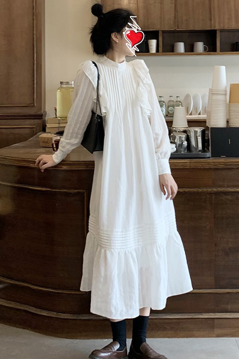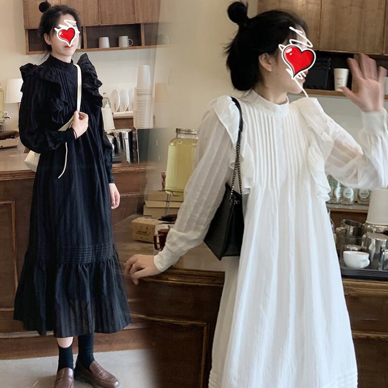 秋 マタニティ ドレス スカート ワンピース レース ロングスカート ワンピドレス 膝下 ミドル丈 袖あり 長袖 ラウンドネック 襟付き レース フリル ふわふわ ハイウエスト かわいい 大人可愛い 大人 上品 お洒落 大人女子 ラブリー キュート 無地 秋 20代 30代 レディース 女性用 ママ マタニティ 女の子 OL デート お出かけ 公園デビュー 女子会 お泊まり 休日 パーティー イベント リゾート 普段使い ファッション コーデ インスタ映え M L XL 2XL ホワイト ブラック
