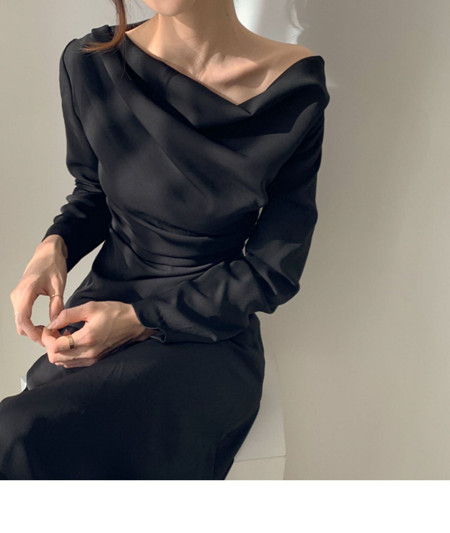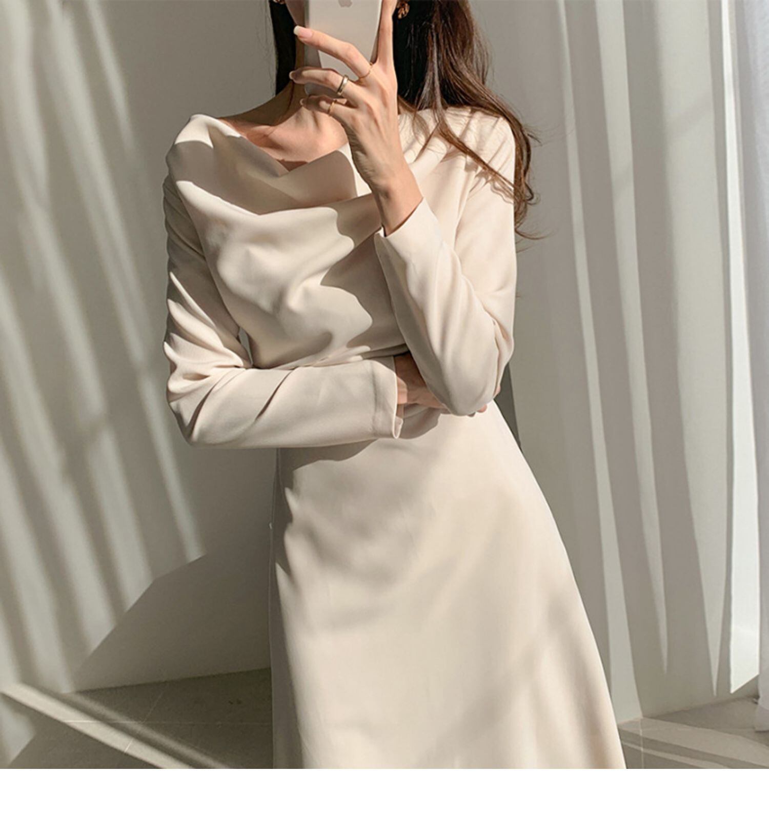 ワンピース レディース フレアワンピース ワンピドレス ミモレ丈 ロング丈 袖あり 長袖 オフショルダー ドレープ 襟なし Aライン セミフレア 演奏会 発表会 ステージ 結婚式 二次会 披露宴 お呼ばれ ピアノ 大人可愛い きれいめ シンプル 上品 おしゃれ お洒落 エレガント とろみ感 S M L アイボリー 黒 ブラック 無地 春 秋 冬 謝恩会 20代 30代 40代 50代 ママ デート お出かけ 女子会 休日 パーティー イベント リゾート 旅行 韓国 オルチャン