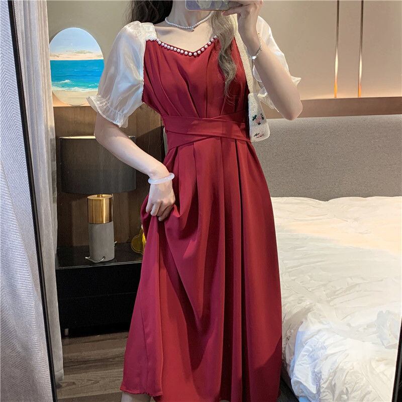 パール付き きれいめワンピ 上品ワンピース ワンピース ウエスト パフスリーブ 五分袖 Aライン スタイル Vネック かわいい 大人可愛い きれいめ シンプル カジュアル 大人 上品 おしゃれ お洒落 かっこいい レトロ エキゾチック 大人可愛い 大人女子 こなれ感 ラフ キュート ガーリー ルーズ 個性的 クール モード系 セクシー エレガント モダン 主役級 存在感 とろみ感 抜け感 春 夏 10代 20代 30代 女性用 ママ デート お出かけ 女子会 休日 M L XL 2XL 3XL 4XL