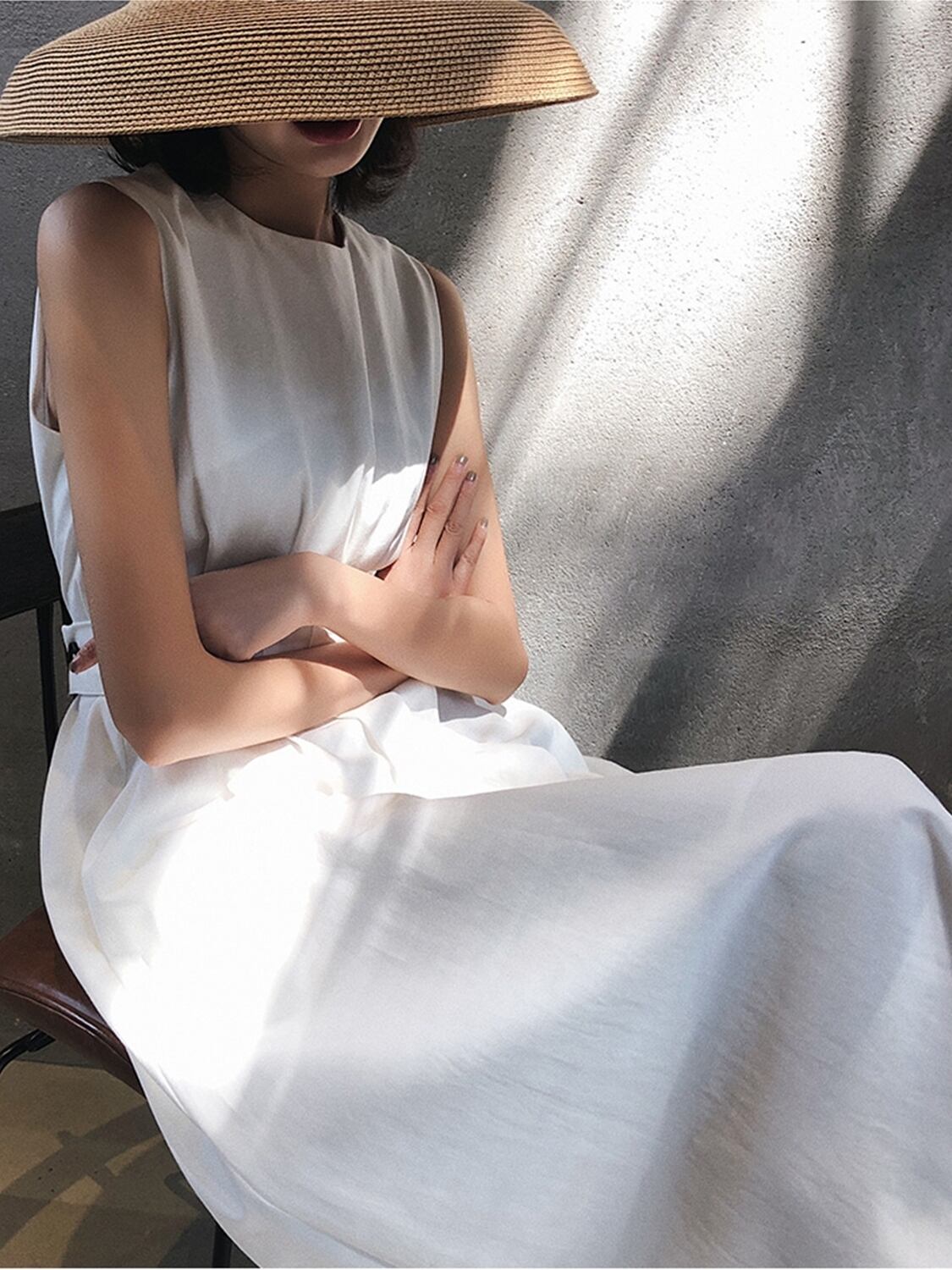 きれいめワンピース ワンピ ワンピース ウエスト ノースリーブ Aライン フレア スタイル ラウンドネック かわいい 大人可愛い きれいめ シンプル カジュアル 大人 上品 おしゃれ お洒落 かっこいい レトロ エキゾチック 大人可愛い 大人女子 こなれ感 ラフ キュート ガーリー ルーズ 個性的 クール モード系 セクシー エレガント モダン 主役級 存在感 とろみ感 抜け感 春 夏 10代 20代 30代 女性用 レディース ママ デート お出かけ 女子会 休日 S M L XL ホワイト ブラック