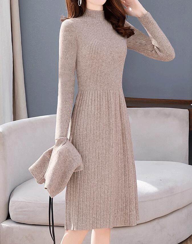 タイトで体のラインがきれいなひざ丈ワンピースはそのままでも可愛い!