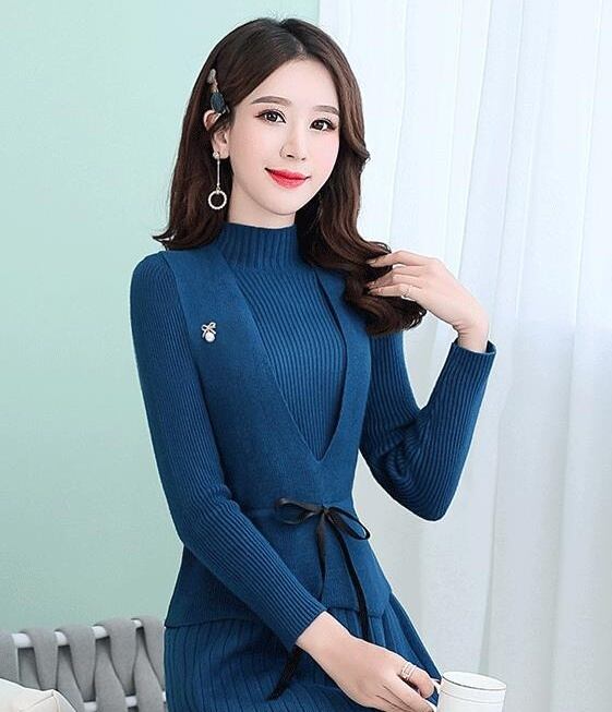 ニットワンピース ベスト付き 2点セット 2way 秋 冬 タートルネック 無地 シンプル レディース ひざ丈 長袖 上品 大人女子 20代 30代 40代 細見え ОL 通勤 デート 女っぽ 今っぽ トレンド オシャレ お洒落 リボン ウエストリボン Aライン きれいめ スリム タイト