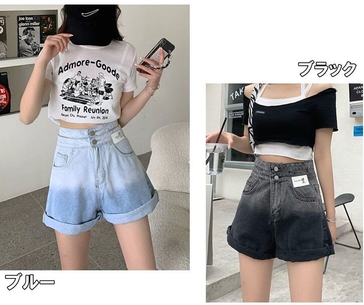 パンツ レディース デニムパンツ ホットパンツ S M L XL 2XL 3XL 4XL 大きいサイズ フリーサイズ ブルー 青 ブラック 黒 大人カラー グラデーション フレア ワイド ルーズ ゆったり ミニ丈 ミニ ショート丈 ショート ダブルボタン ハイウエスト 脚長 美脚 スタイルアップ フェミニン カジュアル きれいめ きれカジ クール かっこいい 定番 王道 万能 着回し シンプル ベーシック 学生 通学 休日 お出かけ デート 大人 大人可愛い こなれ感 ぬけ感 存在感 主役級 韓国
