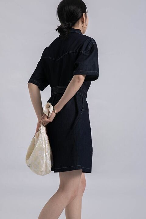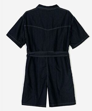 オールインワン ジャンプスーツ ショート丈 5分袖 襟付き ウエストマーク デニム 大人可愛い シンプル カジュアル おしゃれ かっこいい こなれ感 ラフ メンズライク 無地 春 夏 10代 20代 30代 40代 レディース 女性用 ママ 学生 通学 デート お出かけ 公園デビュー 女子会 お泊まり 休日 旅行 高原 ガーデン サイズ M L