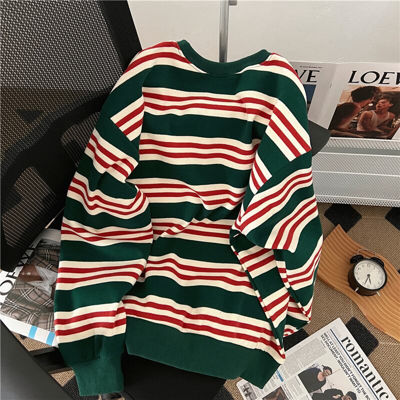 ストライプ レトロ トレーナー ヴィンテージ アンティーク 萌え袖 トップス スポーティー レディース レトロ柄 ロゴ ワッペン ゆったり 大きめ 大きいサイズ 韓国 トレンド 大人可愛い 可愛い 20代 30代 40代 50代 くすみカラー 秋 冬