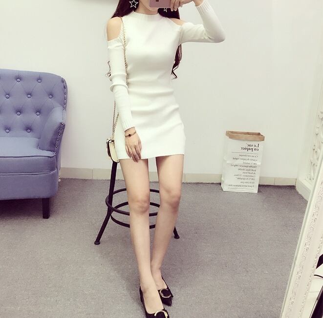 オープンショルダー ショルダーカット ミニワンピース レディース 肩開き 肩出し エレガント こなれ感 ギャル 無地 クール ニットワンピース ミニワンピ 春 秋 冬 ミニ丈 ショート 20代 30代 長袖 セクシー 大人可愛い 色っぽ タイト スリム 細見え デート パーティー ドレス