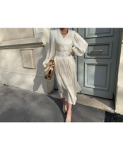 秋冬 サテン ロングドレス プルオーバー ロングスカート ワンピドレス 膝下 ロング丈 袖あり 長袖 Vネック 襟付き スリム ふわふわ 前開き 薄手 大人可愛い 大人 上品 お洒落 かっこいい エキゾチック 大人女子 クール モード系 セクシー 無地 秋 冬 10代 20代 レディース 女性用 ママ オフィス ビジネス OL 通勤 お出かけ お泊まり 休日 パーティー イベント リゾート 旅行 高原 ホテル ガーデン レストラン 普段使い インスタ映え 大きめ ゆったり ホワイト ブラック グリーン
