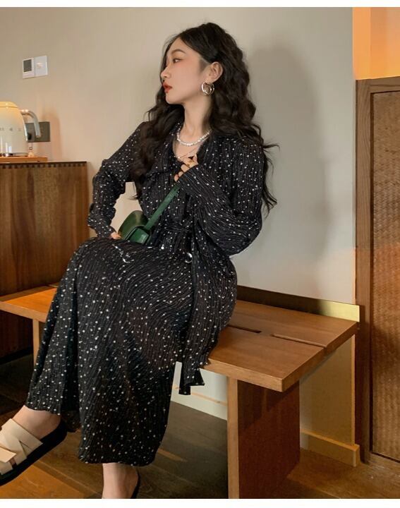 ワンピース ロング 袖あり 長袖 大人可愛い カジュアル 上品 お洒落 レトロ 大人女子 こなれ感 ルーズ 抜け感 小花柄 春 秋 10代 20代 30代 40代 レディース 女性用 ママ 学生 通学 デート お出かけ 女子会 お泊まり イベント 旅行 高原 ホテル レストラン ファッション コーデ スタイル XS S M L ゆる
