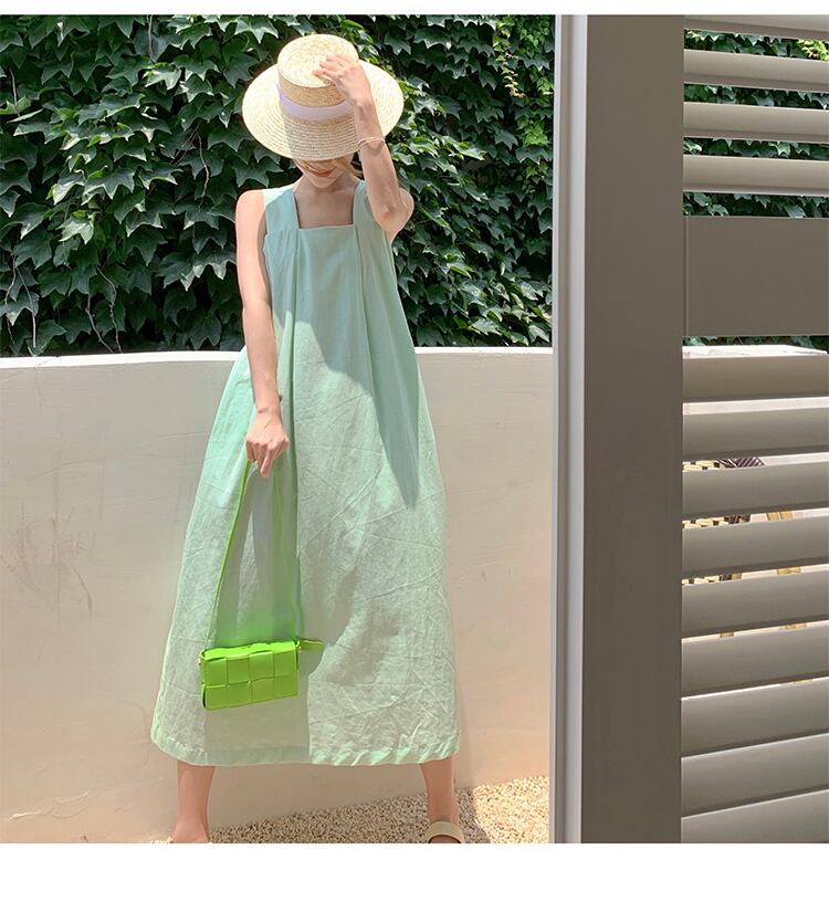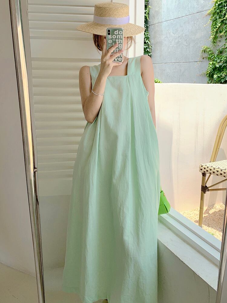ワンピース ロング丈 ノースリーブ かわいい 大人可愛い シンプル カジュアル お洒落 大人可愛い 大人女子 キュート ガーリー ルーズ 無地 夏 10代 20代 30代 レディース 女性用 学生 通学 デート お出かけ 女子会 休日 イベント リゾート 旅行 海 プール 高原 ホテル レストラン ファッション コーデ スタイル モテ S M L ミントグリーン