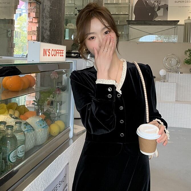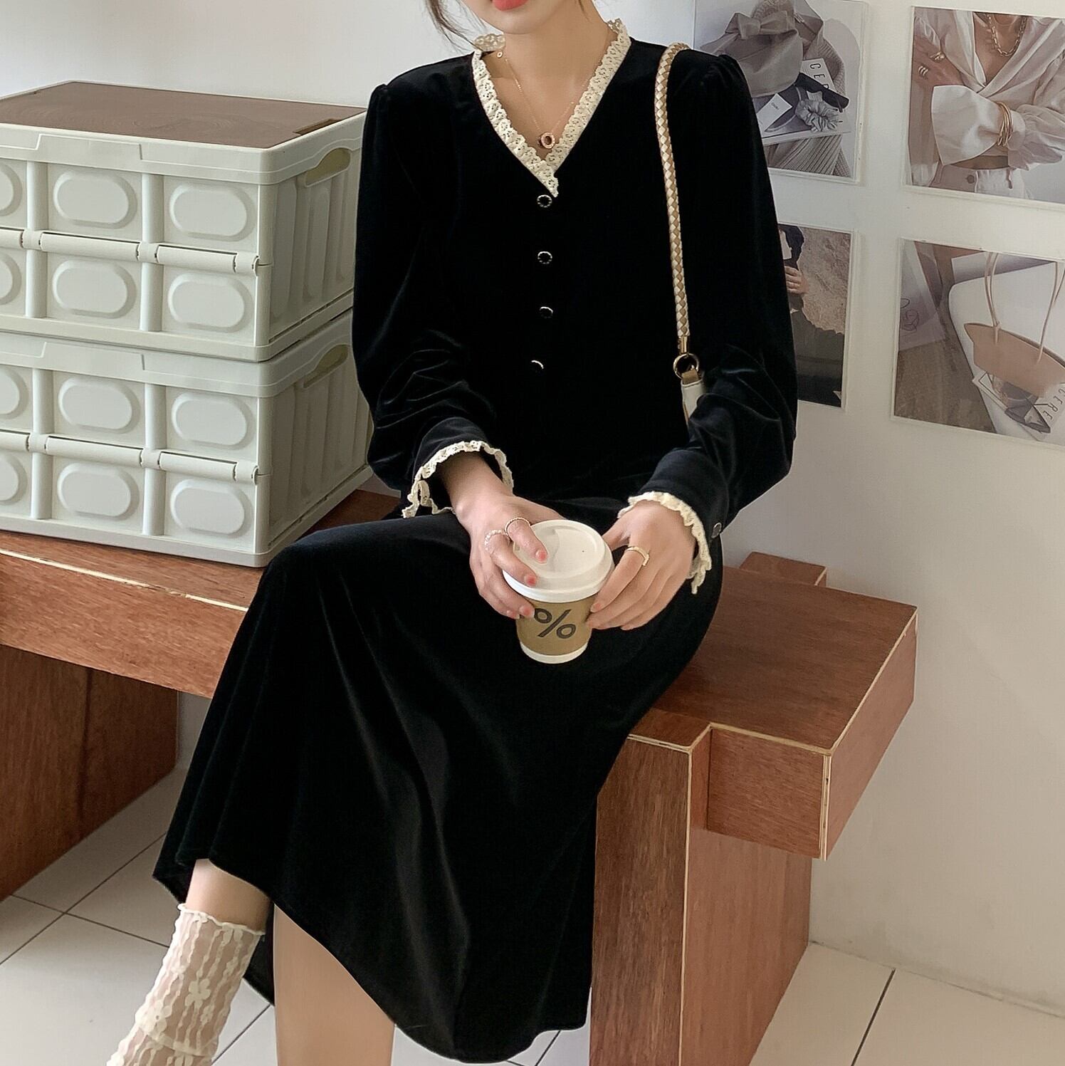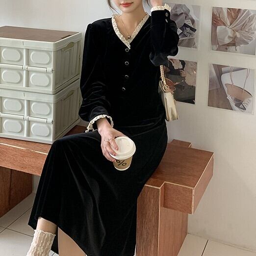 長袖ドレス スカート ドレス ロングスカート ロング ロング丈 長袖 Vネック スリム Aライン ハイウエスト かわいい 大人可愛い きれいめ シンプル 大人 上品 おしゃれ お洒落 大人女子 クール セクシー エレガント 無地 秋 冬 誕生日 お呼ばれ 20代 30代 レディース デート 休日 パーティー ホテル レストラン ファッション コーデ スタイル S M L XL 黒 ブラック