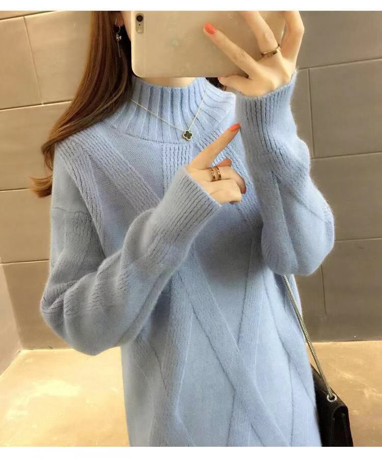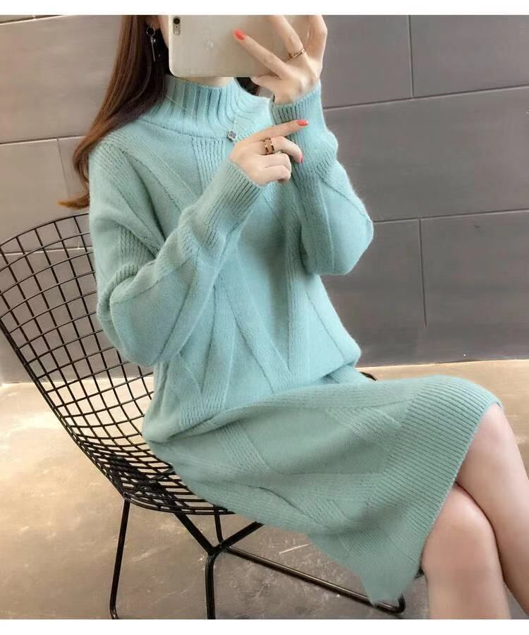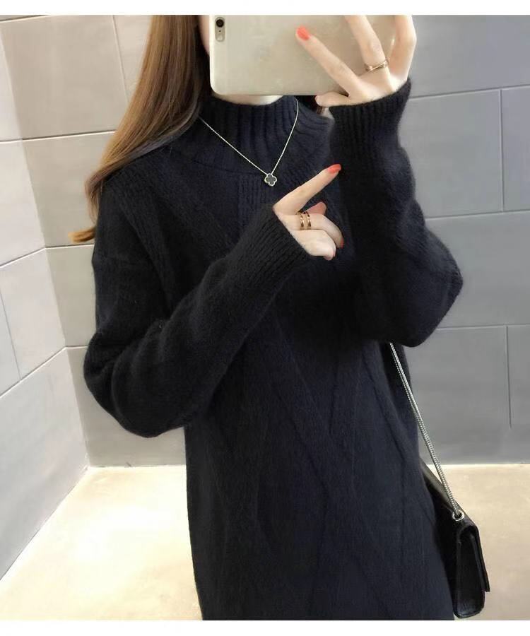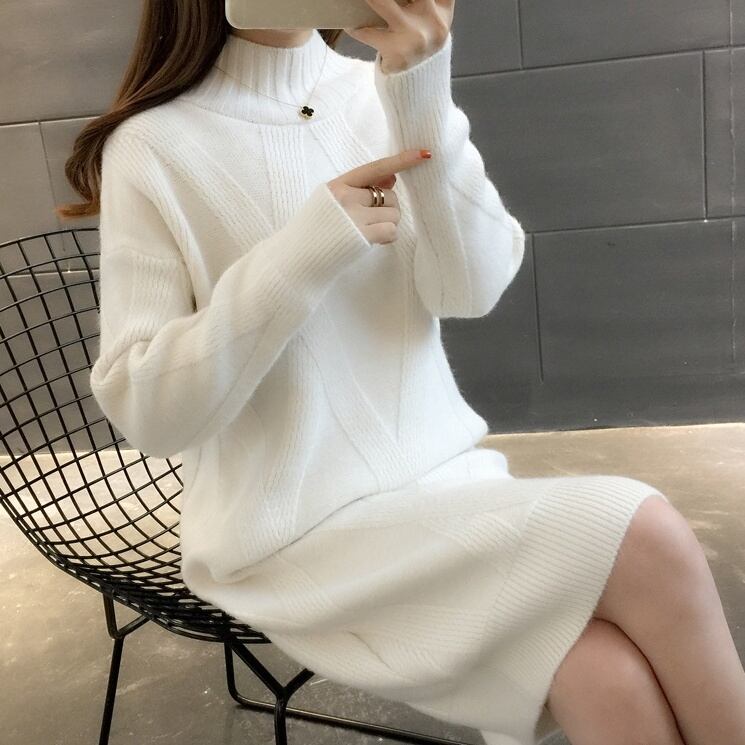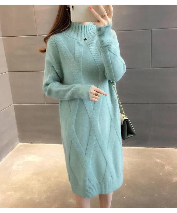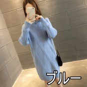 ニットワンピース 6色 萌え袖 レディース ハイネック パステルカラー ひざ丈 膝下 ニット ルーズ ラフ大きいサイズ 大きめ くすみカラー ゆったり 体型カバー 春 秋 冬 暖かい かわいい 大人可愛い カジュアル 無地 シンプル 抜け感 20代 30代 40代 50代 チュニック 細見え