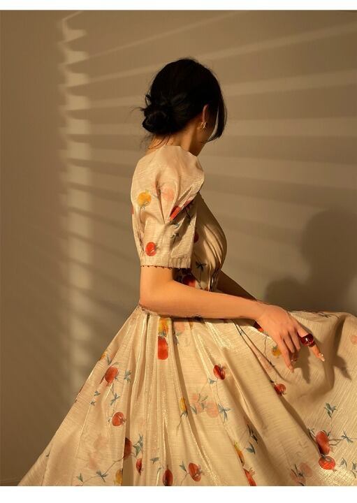 ドレス レディース パーティードレス ミディドレス ワンピース XS S M L XL ベージュ 大人カラー くすみカラー フルーツ ボタニカル プリント ビジュー ビーズ Vネック 半袖 パフスリーブ フレア Aライン ふんわり ミドル丈 ミドル ミディ丈 ミディ 膝丈 ハイウエスト 美脚 脚長 フェミニン ナチュラル モテ ガーリー キュート 大人 大人可愛い 上品 エレガント 華やか さわやか 存在感 主役級 パーティー 2次会 1.5次会 女子会 謝恩会 お呼ばれ 衣装 韓国 オルチャン