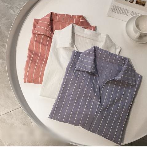 トップス レディース シャツ ブラウス プルオーバー 袖あり 七分袖 襟付き スキッパー 袖リボン ストライプ ベーシック トレンド ゆったり 大きいサイズ 大きめ 体型カバー 着痩せ 薄手 大人可愛い カジュアル フェミニン ガーリー 韓国 シンプル キュート おしゃれ お洒落 ママコーデ 春 夏 秋 冬 お出かけ 通勤 オフィス デート 女子会 通学 学生 普段着 普段使い 着回し オフィスカジュアル ホワイト レッド ブルー M L XL 2XL 3XL 4XL 10代 20代 30代