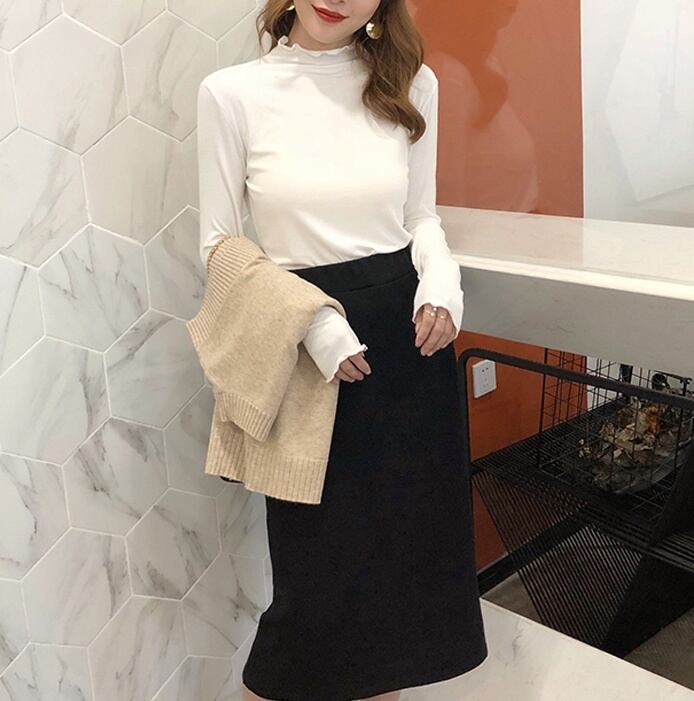 トップス カットソー ハイネック フリル レディース インナー 長袖 春 秋 タートルネック お洒落 オシャレ 薄着 薄手 萌え袖 20代 30代 40代 50代 着回し タイト 細身 スリム 細見え 着やせ かわいい 大人可愛い きれいめ シンプル 無地 カジュアル エレガント 大人女子