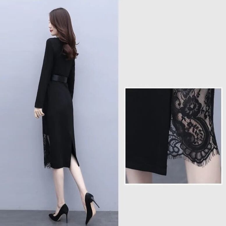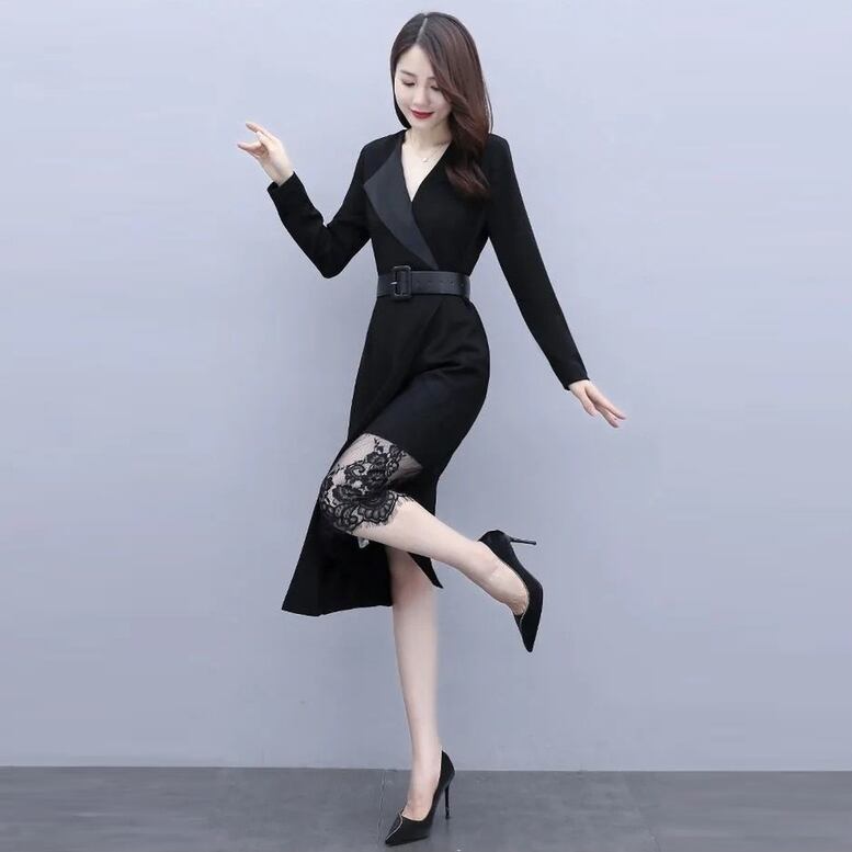 スーツワンピース ワンピース レディース タイト ミドル丈 Vネック ウエストベルト レース切替 長袖 ひざ丈 襟付き アシンメトリー スーツドレス フェミニン ワンピース 入園式 入学式 卒業式 黒 ブラック 大人可愛い きれいめ 上品 ガーリー エレガント フォーマル 春 夏 秋 冬 二次会 お呼ばれ 謝恩会 結婚式 披露宴 セレモニー オフィス ビジネス OL 通勤 学生 通学 デート お出かけ パーティー イベント 女子会 休日 旅行 体型カバー 美脚 トレンド インスタ映え