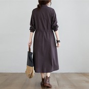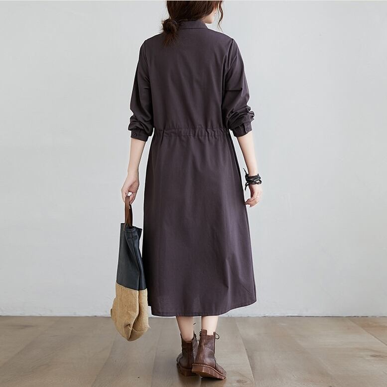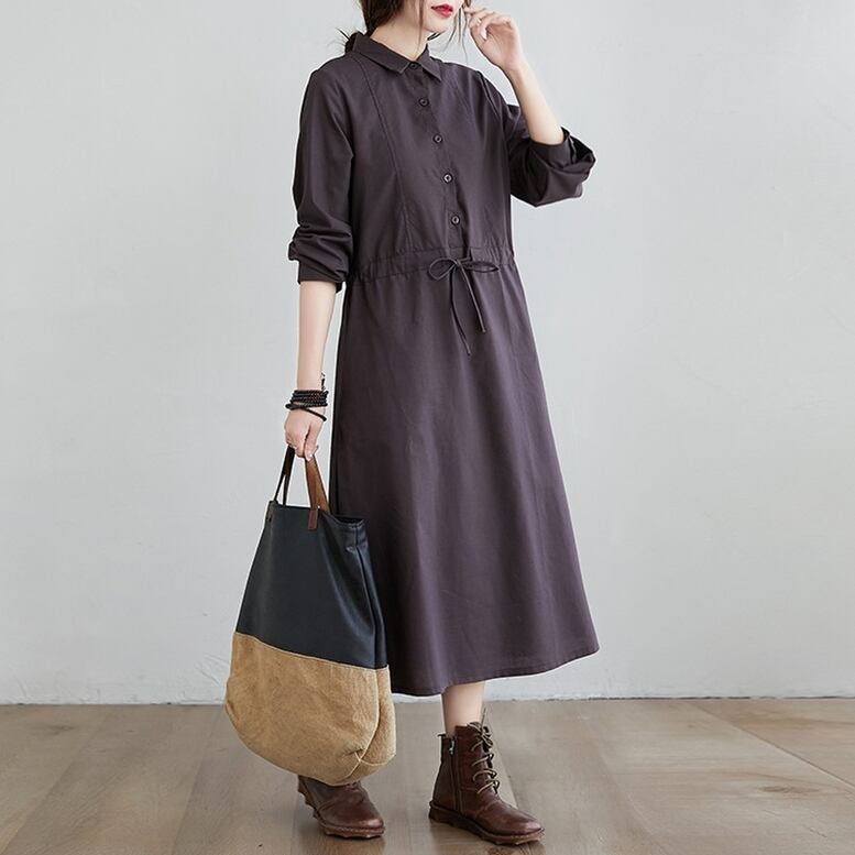 シャツワンピース ワンピース レディース リネンライクドレス ロングワンピース ひざ下丈 長袖 襟付き ウエストリボン ワンピ ワンマイルコーデ フェミニン 普段着 紺 ネイビー 茶色 ブラウン 大人可愛い きれいめ 上品 ガーリー ルーズ エレガント フォーマル 春 夏 秋 冬 二次会 オフィス ビジネス OL 通勤 学生 通学 デート お出かけ パーティー イベント 女子会 休日 アウトドア 体型カバー 普段使い 定番 トレンド ゆったり インスタ映え ベイクドカラー 大人カラー ニュアンスカラー