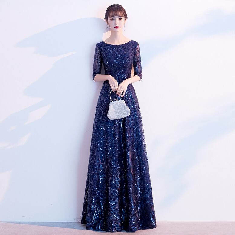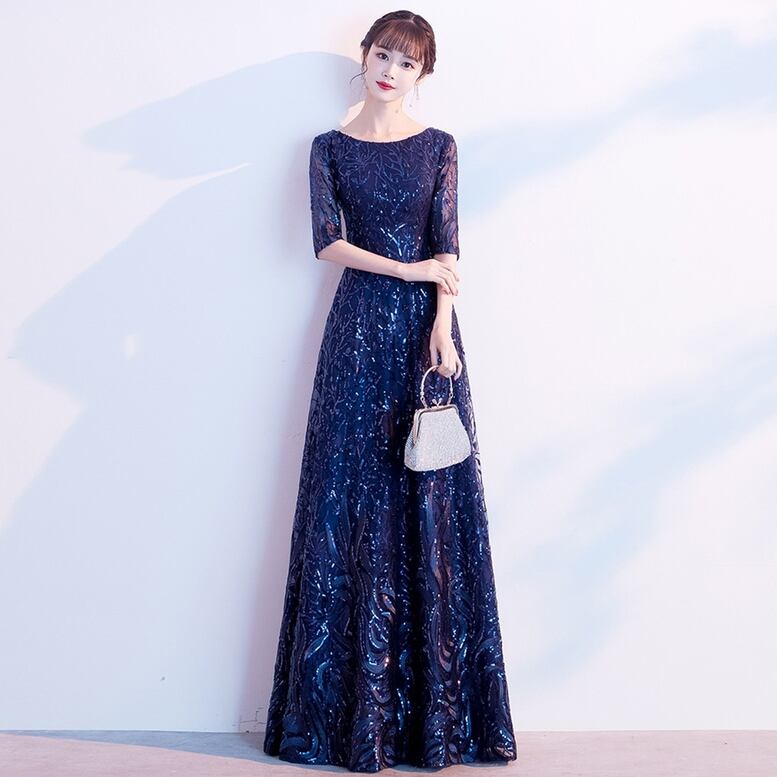 カラーロングドレス ドレス レディース パーティードレス ワンピース 結婚式 ドレス 二次会 フォーマル 編み上げ ロングドレス ピアノ 発表会 パーティードレス 演奏会 お呼ばれ dress 上品 ブライズメイド 成人式 二次会 イブニングドレス コンサート フォーマルドレス 袖あり カクテルドレス 披露宴 5分袖 ラウンドネック ウエストマーク フレア マキシ丈 刺繍 ブルー 大人可愛い きれいめ 上品 エレガント フォーマル クラシック 春 夏 秋 冬