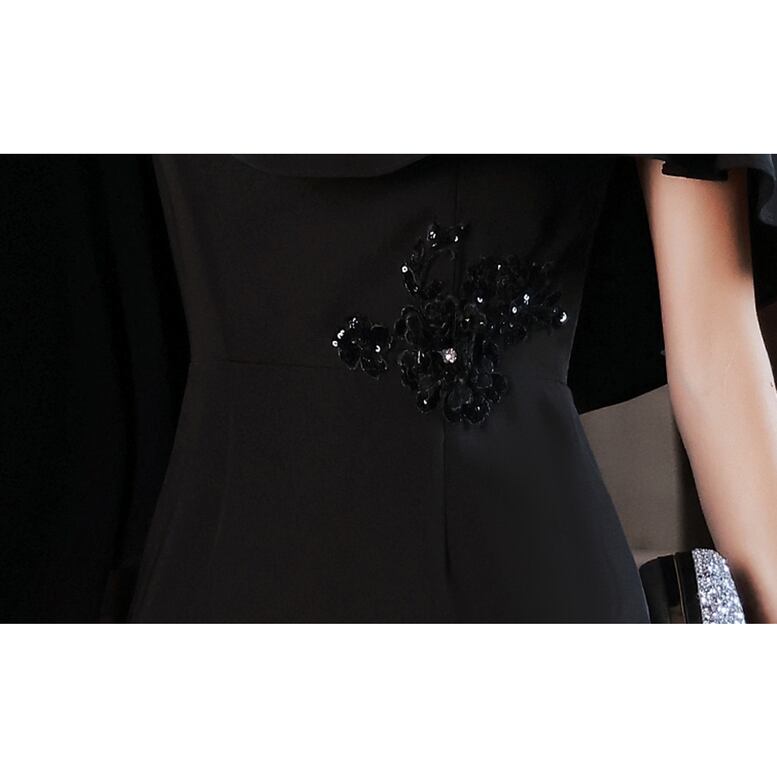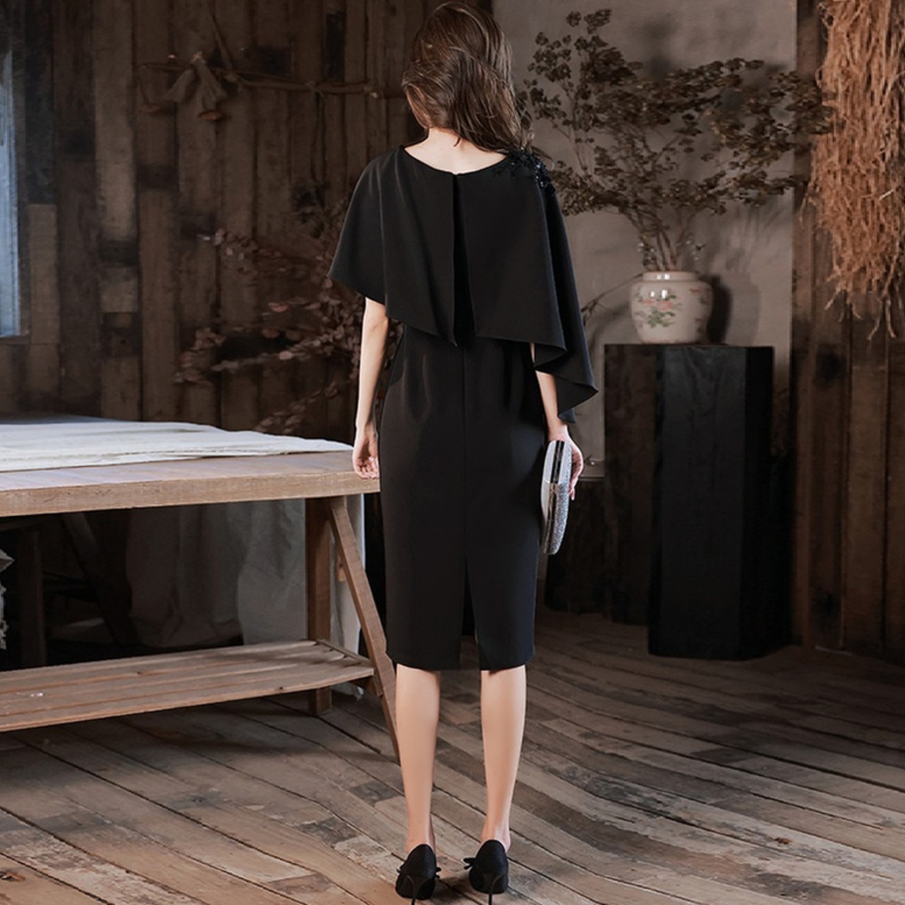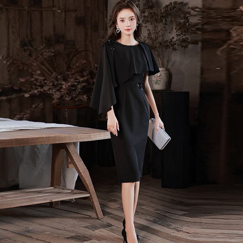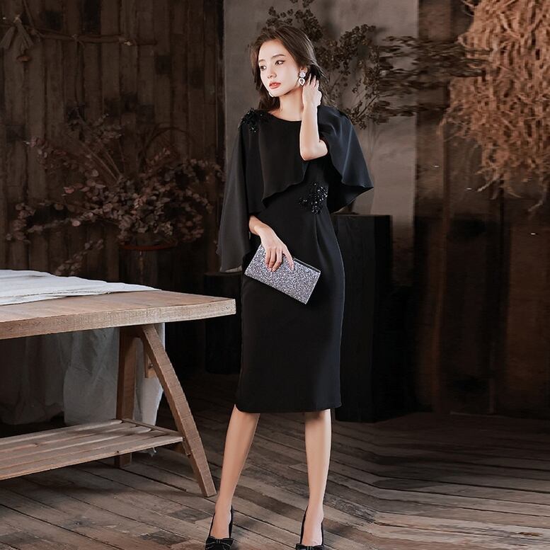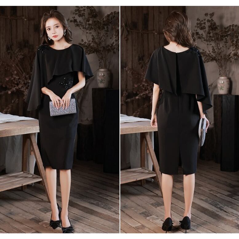 ケープスタイルタイトワンピース ワンピース ドレス レディース フレアスリーブ マント風 ラウンドネック ミディアム丈 ひざ下 タイト スリム 二の腕カバー シフォン 刺繍 ビジュー フィッシュテール 黒 ブラック 大人可愛い きれいめ 上品 エレガント フォーマル 春 夏 秋 冬 二次会 お呼ばれ 謝恩会 結婚式 披露宴 セレモニー オフィス ビジネス OL 通勤 学生 通学 デート お出かけ パーティー イベント 女子会 休日 体型カバー 美脚 インスタ映え モノトーン 大人カラー