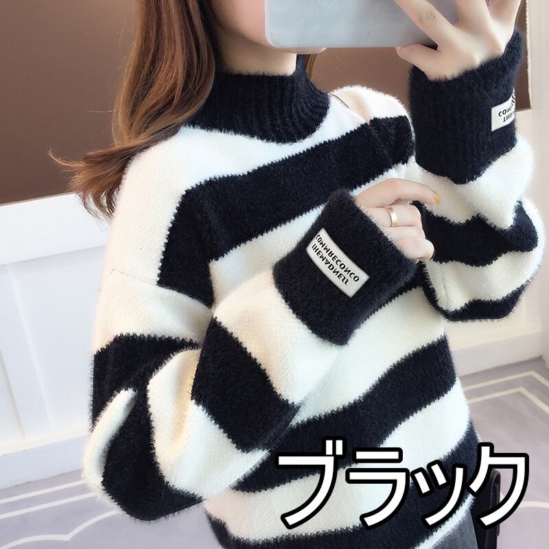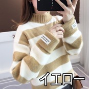 ボーダー ニット セーター 冬 秋 レディース ハイネック タートルネック ふわふわ もこもこ 英字 高見え 萌え袖 大人女子 デート 女子会 ルームウェア 部屋着 ラフ こなれ感 タグ 太め ストライプ オシャレ お洒落 かわいい 大人可愛い 大人女子 暖かい ゆったり 大きめ 小顔 体型カバー パステルカラー くすみカラー 20代 30代 40代 50代 シンプル カジュアル