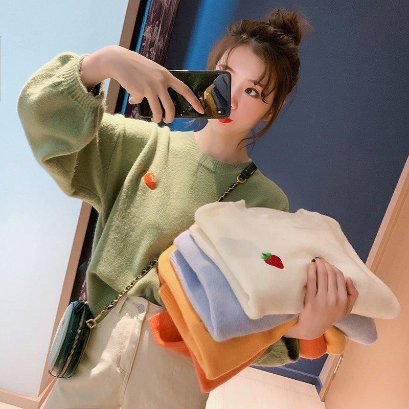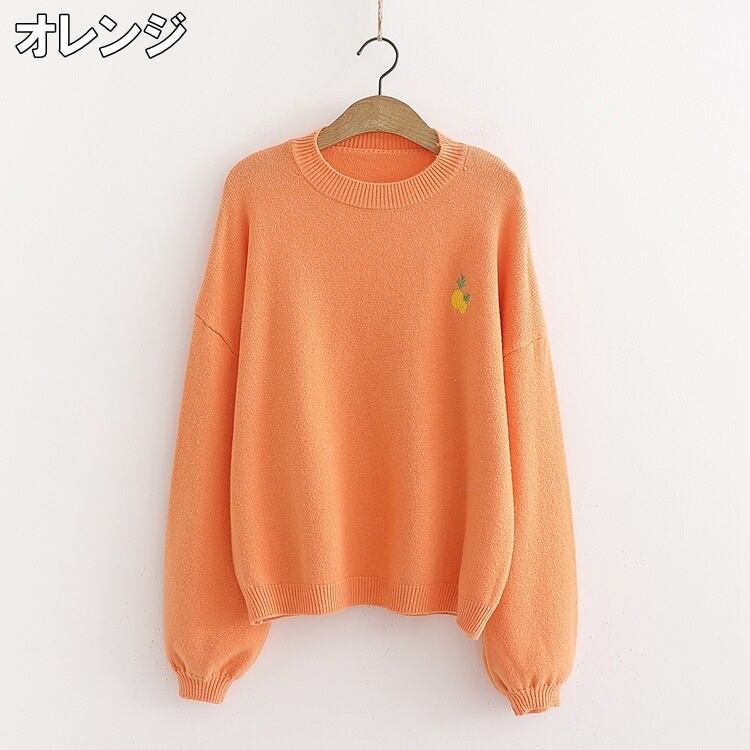 ニット レディース トップス セーター ニットトップス ワンサイズ フリーサイズ イエロー 黄色 グリーン 緑 ベージュ オレンジ パステルカラー くすみカラー シャーベットカラー 秋 冬 クルーネック 無地 ワンポイント フルーツ 長袖 ゆったり ゆる ルーズ ママ フェミニン ナチュラル カジュアル きれいめ きれカジ 大人 大人可愛い こなれ感 ぬけ感 デート 休日 お出かけ 定番 王道 万能 着回し シンプル ガーリー モテ キュート こなれ感 ぬけ感 存在感 主役級 学生 通学 韓国 オルチャン