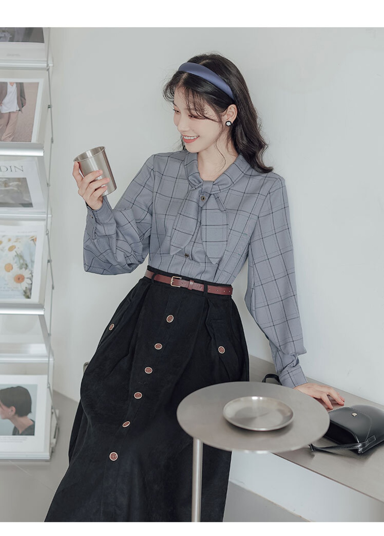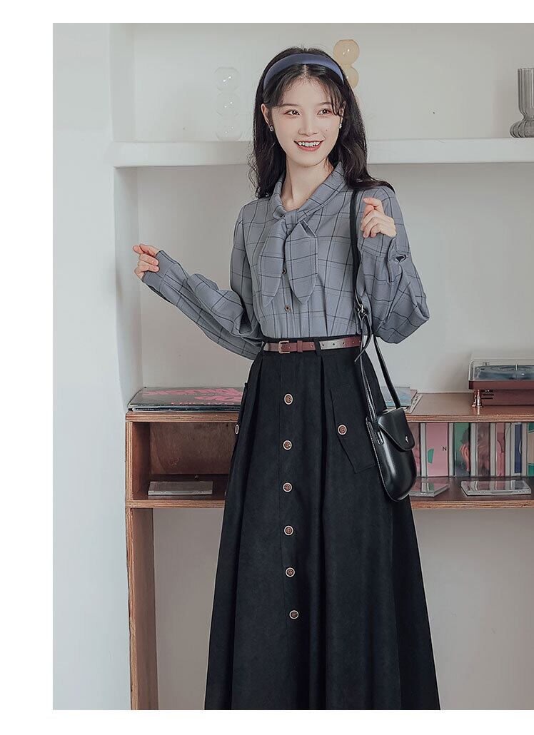 3点セット ロングスカート ブラウス ベルト付き レトロ アンティーク レディース お得 上下セット きれいめ 長袖 ベルト ボタン 20代 30代 40代 ふんわり フェミニン こなれ感 キュート 上品 オシャレ お洒落 タイ リボン タイ付き ミモレ丈 かわいい 大人可愛い 大人女子 エレガント タイト 細見え 体型カバー 春 秋 冬 格子柄 Aライン 森ガール パフスリーブ ランタンスリーブ チェック