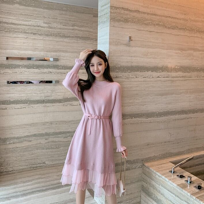 ニットドレス ワンピース ドレス セーター ワンピドレス ミディアム丈 長袖 タートルネック ハーフタートルネック フレア 細身 Aライン 切り替えデザイン レース ベルト かわいい 大人可愛い きれいめ シンプル 大人 上品 おしゃれ お洒落 大人女子 ラブリー キュート ガーリー エレガント 無地 春 秋 冬 誕生日 お呼ばれ 10代 20代 30代 レディース デート お出かけ 女子会 休日 パーティー イベント ホテル レストラン 普段使い 楽ちん S M L 白 ホワイト 黒 ブラック ピンク
