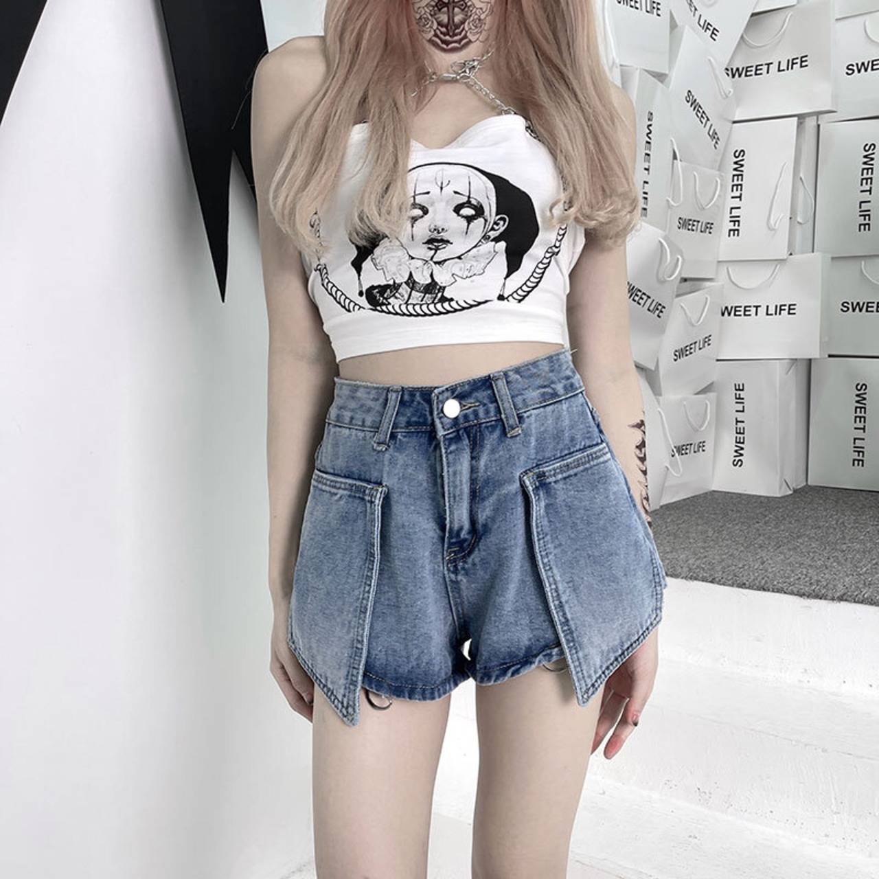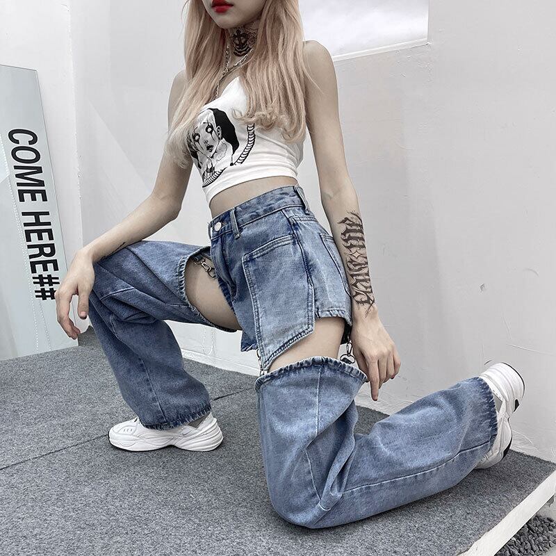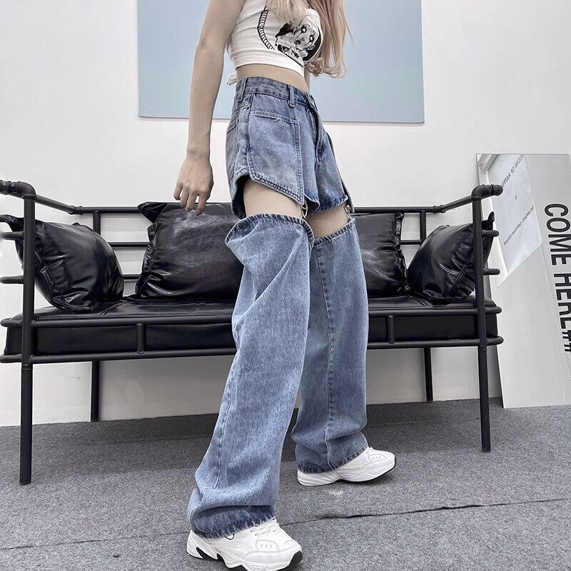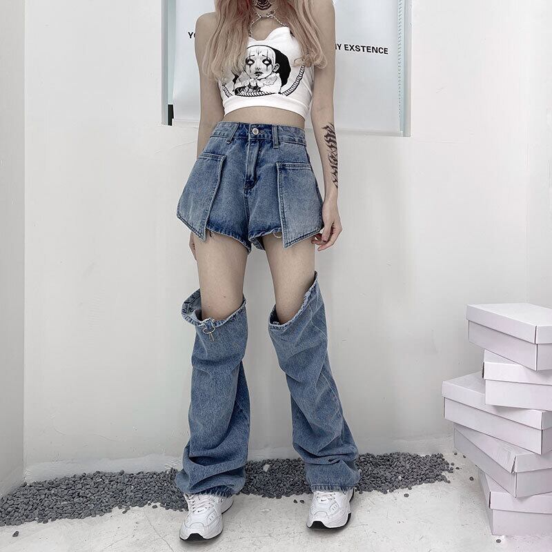 取り外し可能 ジーンズ デニム 2way レッグウォーマー ショートパンツ レディース ショート丈 主役 存在感 カジュアル 大人女子 こなれ感 ラフ ロング丈 ゆったり 大きめ 大きいサイズ ジーパン ハイウエスト 金具 20代 30代 オシャレ お洒落 ロック パンク メタル 足見せ 美脚 体型カバー 細見え ライブ ライヴ コンサート フェス イベント パーティー かっこいい クール セクシー 個性派 個性的 絶対領域