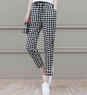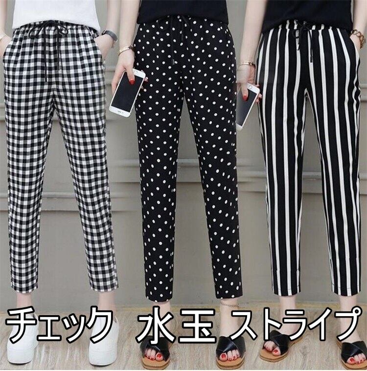 大きいサイズ パンツ 九分丈 レディース 水玉 ドット ストライプ ボーダー チェック 薄手 ウエスト調節 調整 チェック柄 ルームウェア 春 夏 秋 部屋着 こなれ感 レトロ セクシー モード クール かっこいい 個性的 個性派 ラフ カジュアル 格子柄 モノクロ 20代 30代 40代 大きめ ゆったり3XL 4XL 5XL 体型カバー 細見え お洒落 オシャレ かわいい 大人可愛い クール タイト