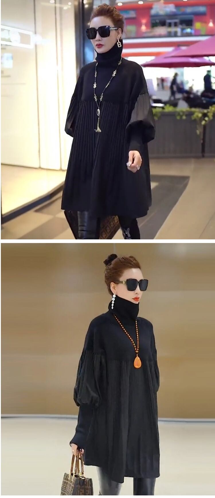 春秋 ニット セーター トップス ニットソー セーター プルオーバー 上着 膝上 ミディアム丈 袖あり 長袖 ハイネック タートルネック ふわふわ 普通生地(春秋用) 大人可愛い きれいめ 大人 上品 お洒落 かっこいい 大人女子 ルーズ クール 無地 春 秋 30代 レディース 女性用 ママ ビジネス OL 通勤 デート 女子会 お泊まり 休日 パーティー イベント スタイル 暖かい 美脚 インスタ映え M L XL 2XL 3XL 4XL ブラック