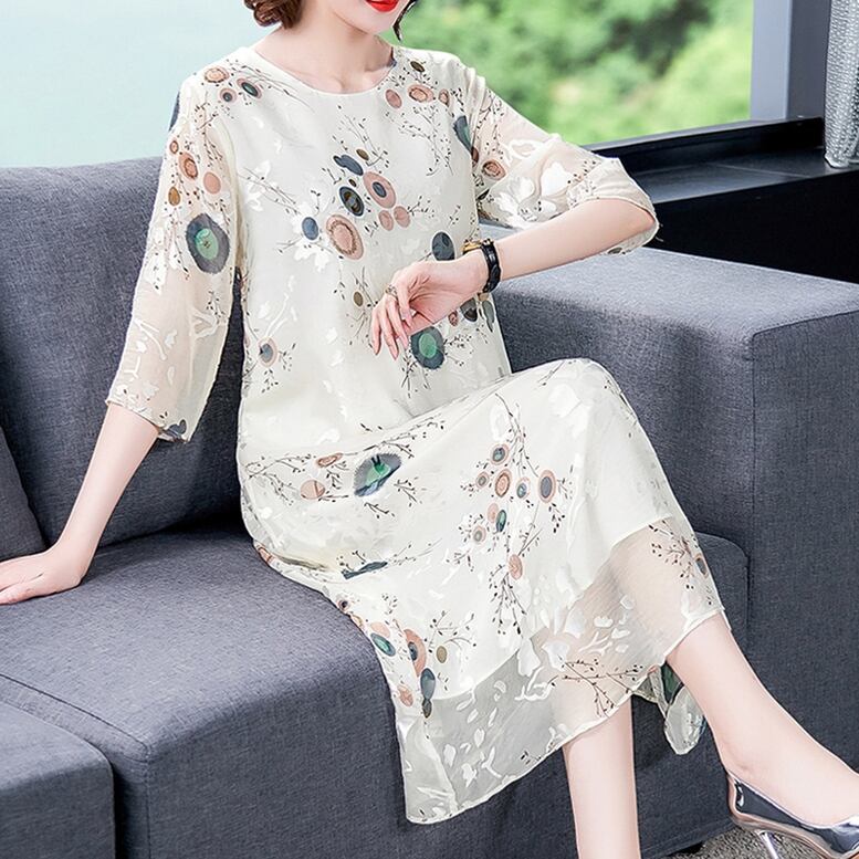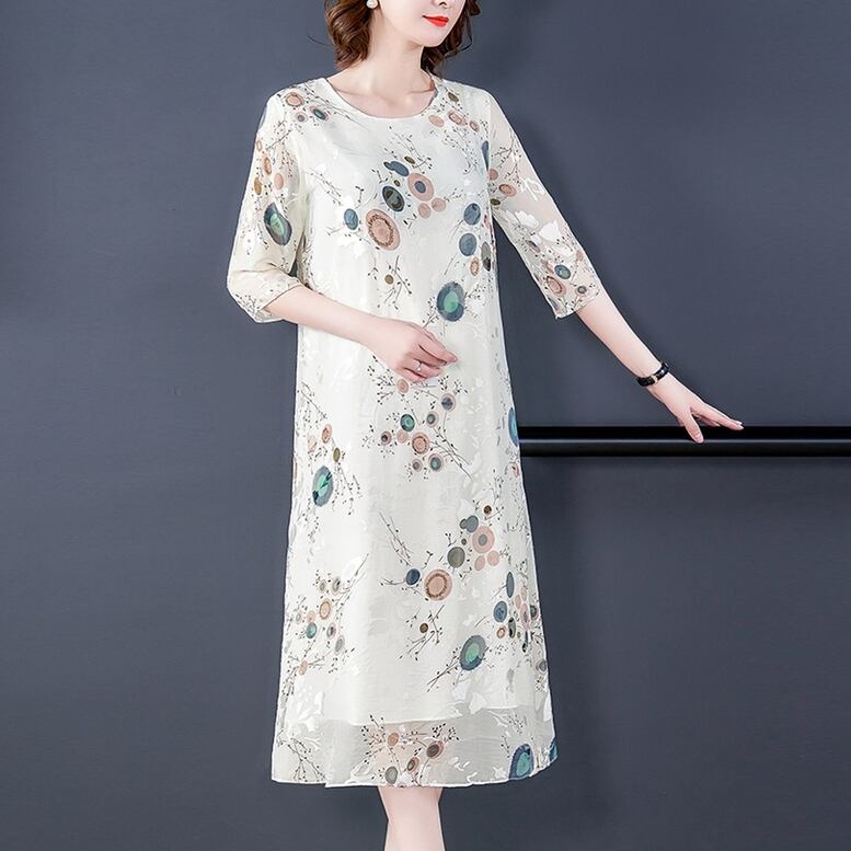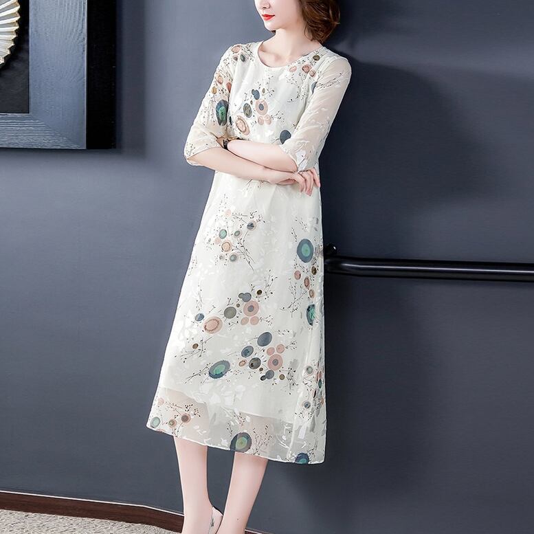 刺繍ワンピース ワンピース レディース ロングワンピース シフォンワンピース オリエンタル柄 刺繍 ドレス ひざ下丈 シアー シフォン 7分袖 ラウンドネック 白 ホワイト 大きいサイズ ワンピドレス 大人可愛い きれいめ 上品 ガーリー ルーズ エレガント フォーマル 春 夏 秋 冬 二次会 お呼ばれ 謝恩会 披露宴 セレモニー オフィス ビジネス OL 通勤 学生 通学 デート お出かけ パーティー イベント 女子会 休日 体型カバー モテ トレンド オーバーサイズ ゆったり インスタ映え