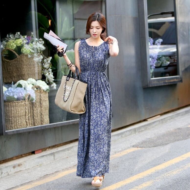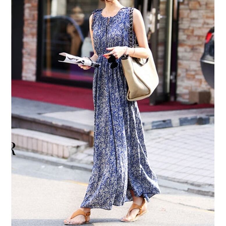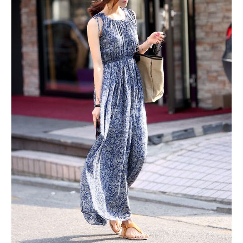 小花柄ワンピース ワンピース レディース 花柄プリントドレス マキシ ドレス ノースリーブ ボタニカル フラワー 総柄 ロングワンピース ウエストゴム フレア シャーリング プリーツ 青 ブルー ワンピドレス リゾートワンピース 大人可愛い きれいめ 上品 ガーリー ルーズ エレガント フォーマル 春 夏 秋 冬 二次会 お呼ばれ オフィス OL 通勤 学生 通学 デート お出かけ パーティー イベント 女子会 休日 旅行 リゾート アウトドア 体型カバー モテ 普段使い トレンド ゆったり インスタ映え