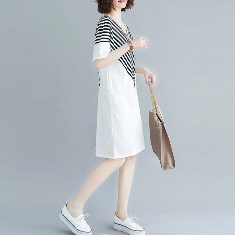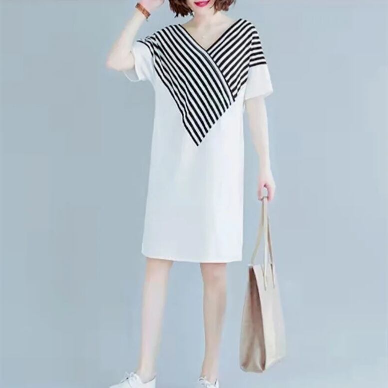 ワンピース ミディ丈ワンピース レディース ペンシルワンピース ひざ上丈 シャツ ドレス カシュクール Vネック ストライプ柄 切り替え 半袖 ドロップショルダー 黒 ブラック 白 ホワイト 大きいサイズ 大人可愛い きれいめ 上品 マニッシュ キュート ガーリー ルーズ エレガント フォーマル 春 夏 秋 冬 二次会 オフィス ビジネス OL 通勤 学生 通学 デート お出かけ パーティー イベント 女子会 休日 アウトドア 体型カバー モテ 普段使い 定番 トレンド ゆったり インスタ映え