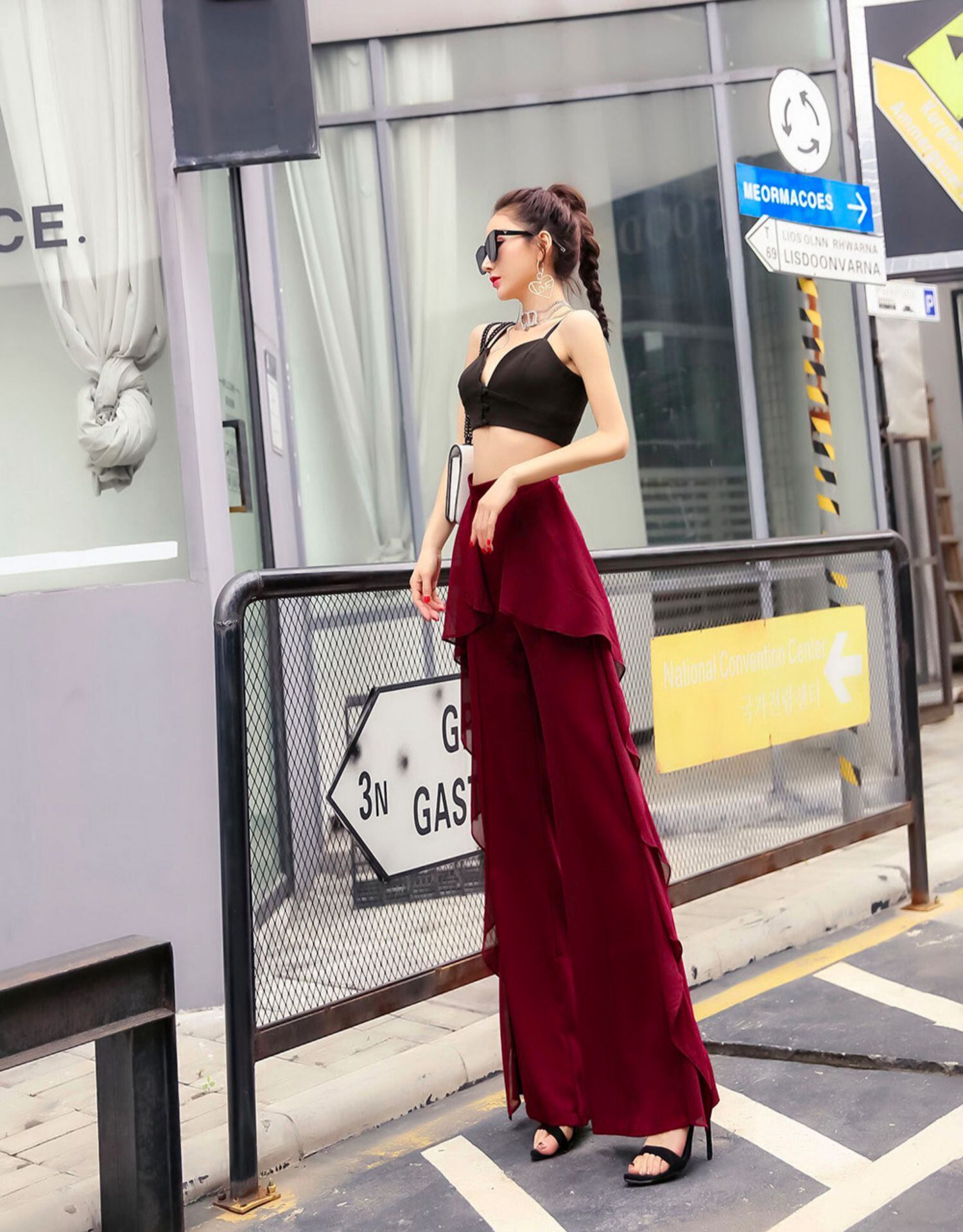 サイドにボリュームのあるフリルデザインがあるパンツです。