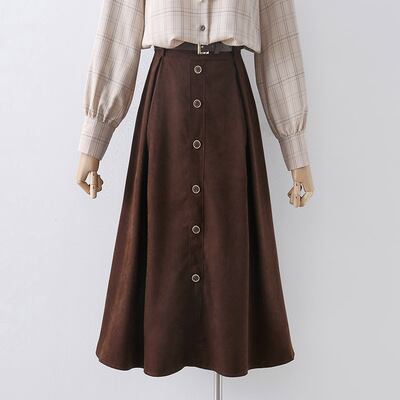 ベルト付きのスカートはAラインで、女性らしくきれいなシルエットです。