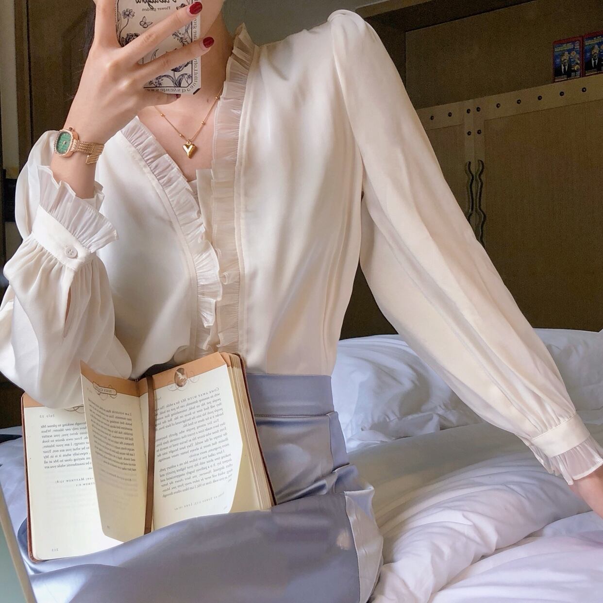 トップス 長袖 ボリューム袖 Vネック シフォン シフォンシャツ アプリコット ワンカラー かわいい 大人可愛い きれいめ シンプル カジュアル 大人 上品 おしゃれ お洒落 かっこいい レトロ アジアン エスニック エキゾチック 大人可愛い 大人女子 こなれ感 ラフ キュート ガーリー ルーズ 個性的 クール モード系 セクシー エレガント モダン 主役級 存在感 とろみ感 抜け感 春 秋 10代 20代 30代 女性用 ママ デート お出かけ 公園デビュー 女子会 休日 アウトドア 旅行 ガーデン