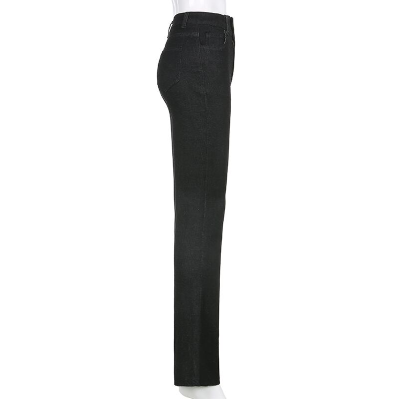 スタイルアップ効果抜群のハイウエストブラックジーンズ。