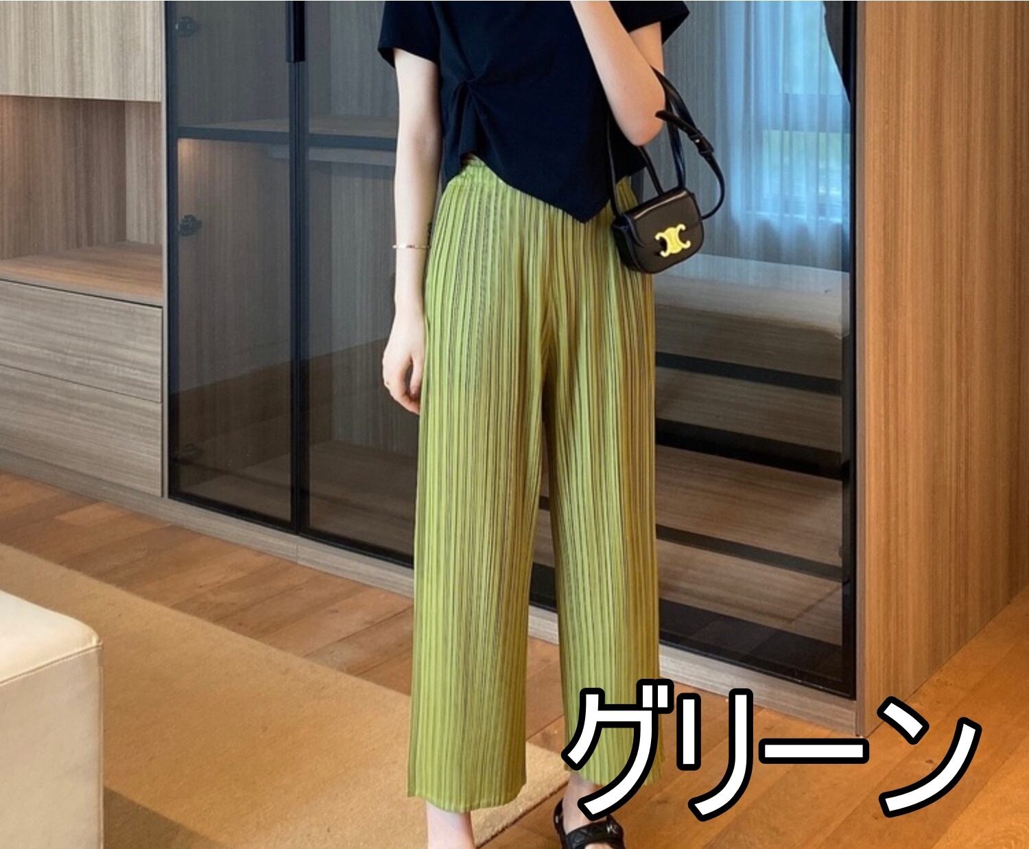 プリーツ ストレートパンツ ワイドパンツ レディース ハイウエスト ゆったり 大きめ とろみ 上品 ボトムス ズボン こなれ感 ルーズ 個性派 個性的 ウエストゴム くすみカラー 春 夏 秋 7分丈 九分丈 細見え 美脚 体型カバー 20代 30代 40代 50代 お洒落 オシャレ かわいい 大人可愛い カジュアル シンプル きれいめ 大人女子 ОL 通勤 オフィス デート 水色 青 緑 グリーン