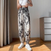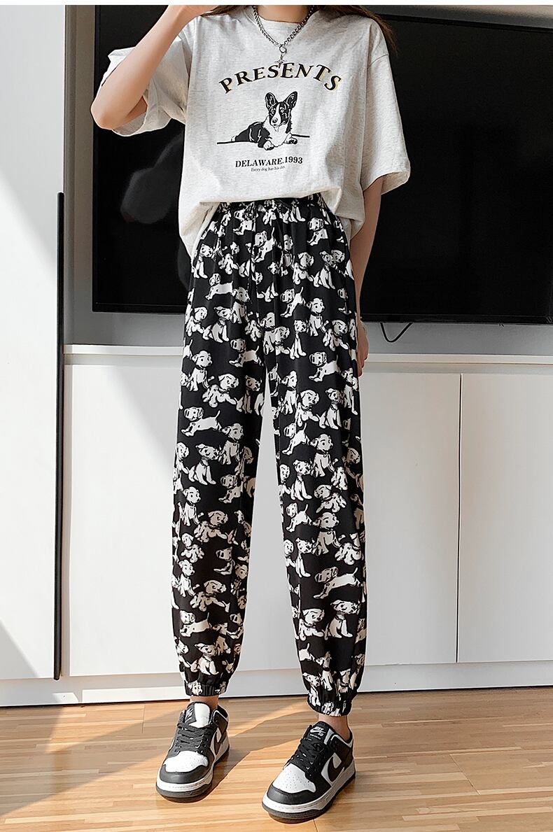 総柄 薄手 ロングパンツ 春 夏 レディース タイダイ 水彩画 花 フラワー 十字架 花柄 犬 子犬 ドッグ かわいい 大人可愛い とろみ 存在感 主役 2XL 3XL 30代 40代 50代 モノクロ 白黒 モノトーン ウエストゴム ハイウエスト 裾絞り 薄手 シンプル カジュアル 派手 個性派 個性的 ゆったり 大きめ 大きいサイズ