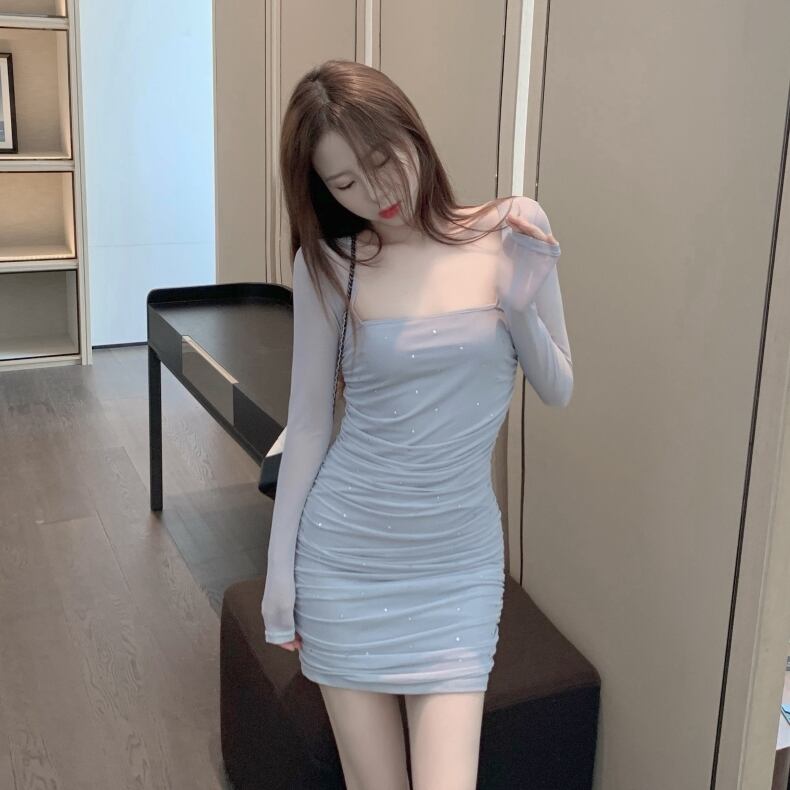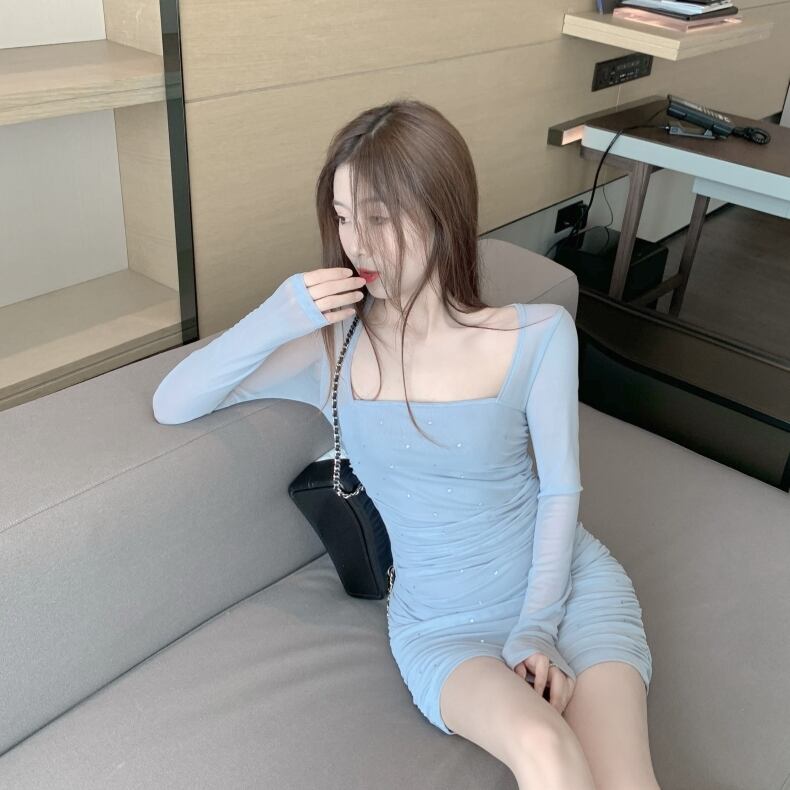 おしゃれデザインのスリムワンピ。