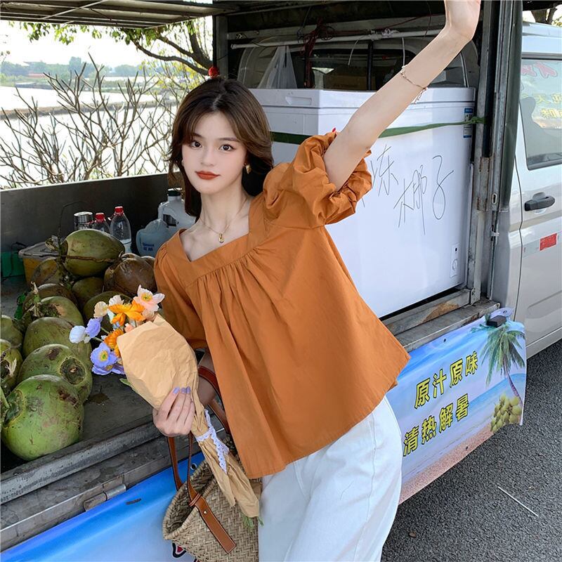 カットソー レディース トップス パフスリーブ 無地 春 夏 秋 スクエアネック 半袖 五分袖 ショート丈 ミドル丈 美ライン 美シルエット 体型カバー タイト ママ フェミニン ナチュラル カジュアル お散歩 公園デビュー おでかけ きれいめ きれカジ 大人 大人可愛い こなれ感 ぬけ感 存在感 主役級 デート 休日 お出かけ 定番 万能 着回し 王道 シンプル ベーシック モテ 通学 学生 韓国 M L XL 2XL 3XL 4XL 大きいサイズ オレンジ グリーン 緑 大人カラー くすみカラー
