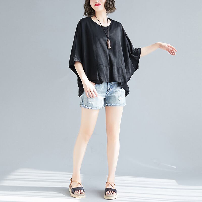 白黒カラバリドルマンスリーブ5分袖ワイドTシャツカットソー。
