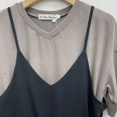 Tシャツ サロペット 2点セット お得 レディース 半袖 Vネック ウエストマーク くすみカラー ルーズ 個性的 個性派 レトロ こなれ感 とろみ ラフ カジュアル シンプル かわいい 大人可愛い オシャレ お洒落 5分袖 ロング丈 ロングパンツ ワイドパンツ 体型カバー 細見え ワイド ゆったり 大きめ 大きいサイズ 2XL 30代 40代 50代 春 夏 秋 着回し