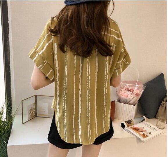 シャツ レディース トップス ブラウス M L XL 2XL 3XL 4XL 大きいサイズ プラスサイズ ホワイト 白 グレー 灰色 イエロー 黄色 ストライプ 春 夏 半袖 ロールアップ 襟付き ショート丈 ミドル丈 ストレート ルーズ ゆったり ゆる ママ フェミニン ナチュラル カジュアル きれいめ きれカジ 大人 大人可愛い こなれ感 ぬけ感 存在感 主役級 休日 お出かけ デート お呼ばれ さわやか ガーリー キュート 定番 万能 着回し 王道 シンプル ベーシック 通学 学生 韓国 オルチャン