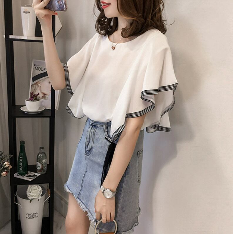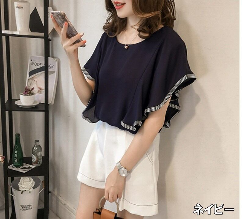 ブラウス レディース トップス シャツ S M L XL 2XL 3XL 4XL 大きいサイズ プラスサイズ ホワイト 白 ネイビー 紺 無地 ライン シフォン バックシャン 春 夏 半袖 フレアスリーブ ラウンドネック ショート丈 ミドル丈 ゆったり ゆる ルーズ 体型カバー ママ フェミニン ナチュラル カジュアル きれいめ きれカジ 大人 大人可愛い こなれ感 ぬけ感 存在感 主役級 休日 お出かけ デート お呼ばれ 華やか さわやか マリン ガーリー モテ キュート 定番 万能 着回し 通勤 OL