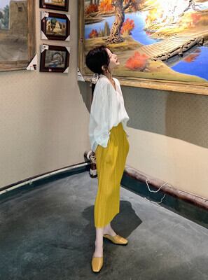 プリーツスカート ミモレ丈 春 夏 秋 レディース シフォン ロングスカート ロング丈 膝下 セクシー モダン 伸縮性 韓国 トレンド こなれ感 とろみ スリット イエロー 黄色 ピンク 青 ブルー 原色 派手色 20代 30代 40代 50代 お洒落 オシャレ かわいい 大人可愛い 大人女子 きれいめ エレガント シンプル 無地 着回し ОL 通勤 オフィス Iライン ストレート ゆったり