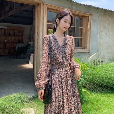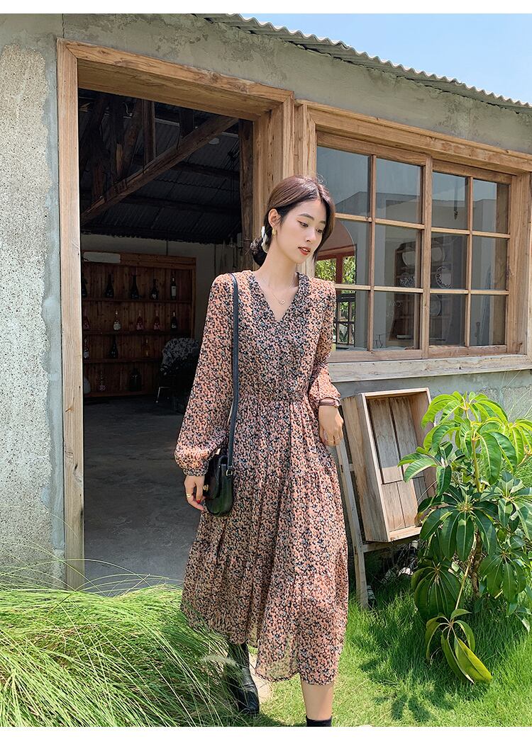 シフォンワンピース ティアードワンピース Vネック ロングワンピース レディース 膝下 ギャザー ミモレ丈 ランタンスリーブ レトロ とろみ ルーズ 韓国 トレンド 3段スカート フリル 春 夏 秋 オシャレ お洒落 かわいい 大人可愛い 大人女子 ガーリー キュート 小顔 細見え 体型カバー ウエストマーク Aライン 上品 ОL 通勤 デート 女子会 エレガント 20代 30代 40代 パフスリーブ 総柄 小花 花柄 くすみカラー 透け感