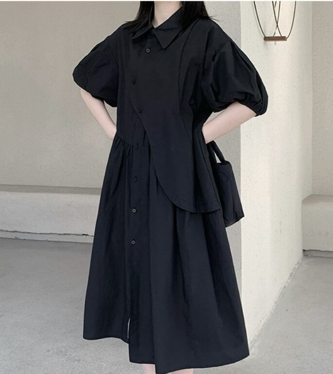 ワンピース スカート 襟付き ブラック 半袖 袖あり ロング かわいい 大人可愛い きれいめ シンプル カジュアル 大人 上品 おしゃれ お洒落 かっこいい レトロ アジアン エスニック エキゾチック 大人可愛い 大人女子 こなれ感 ラフ キュート ガーリー ルーズ 個性的 クール モード系 セクシー エレガント モダン 主役級 存在感 とろみ感 抜け感 春 秋 10代 20代 30代 女性用 ママ デート お出かけ 公園デビュー 女子会 休日 アウトドア 旅行 ガーデン 着回し 普段使い 重ね着 お揃