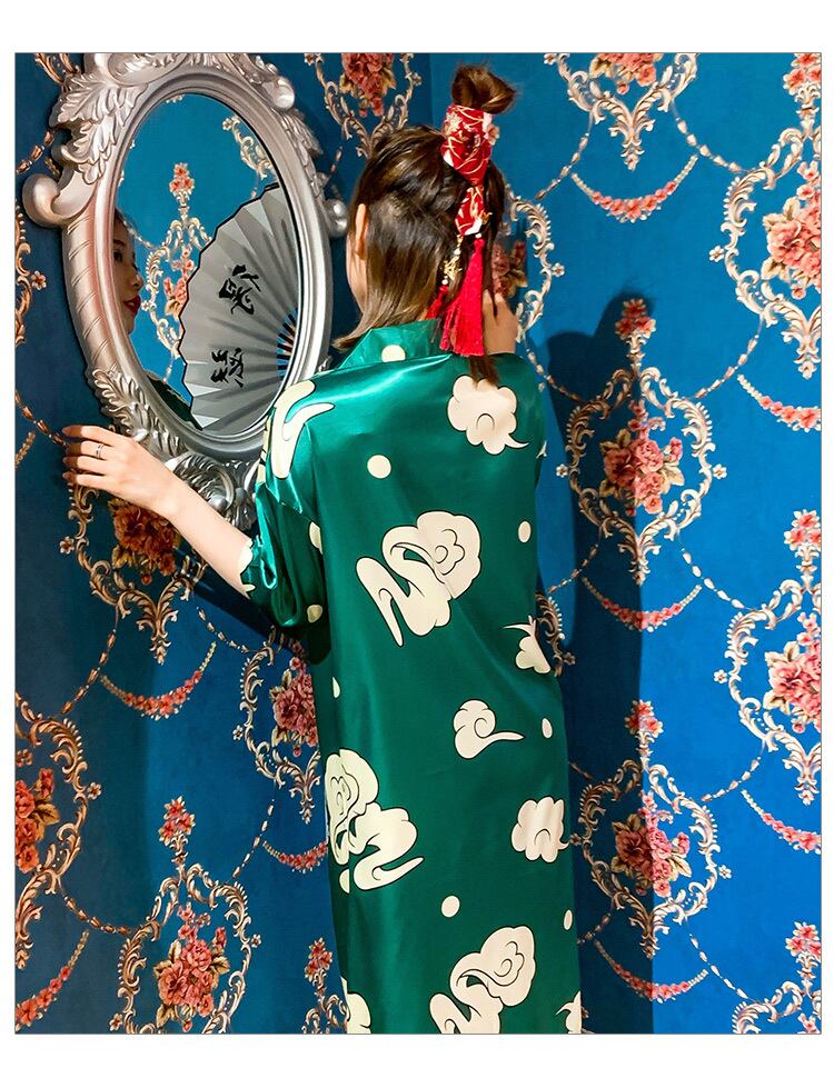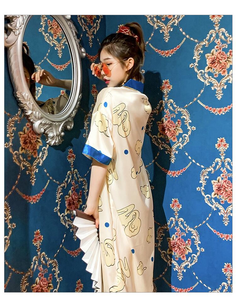 ルームウェア アジアン 中国 チャイナ レディース 6色 パジャマ 部屋着 ワンピース インパクト おもしろ バイカラー 女子会 目立つ シャツワンピース 個性派 個性的 映え SNS 半袖 春 夏 秋 お洒落 オシャレ かわいい 大人可愛い カジュアル 派手 エスニック 膝丈 膝下 ロング丈 ワイド ゆったり 大きいサイズ 大きめ 2XL 五分袖 主役 存在感 レトロ つるつる クール ルーズ ボーイッシュ 20代 30代 40代